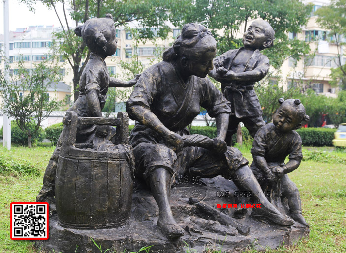 民間小型成品系列現(xiàn)貨玻璃鋼雕塑,阿炳、放電影、喝混沌、浣衣女、成品真人比例