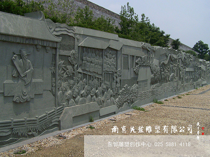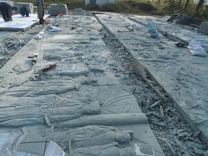 劉公祠(紀念大明名臣劉伯溫祠堂)巨型青石花崗巖浮雕制作中