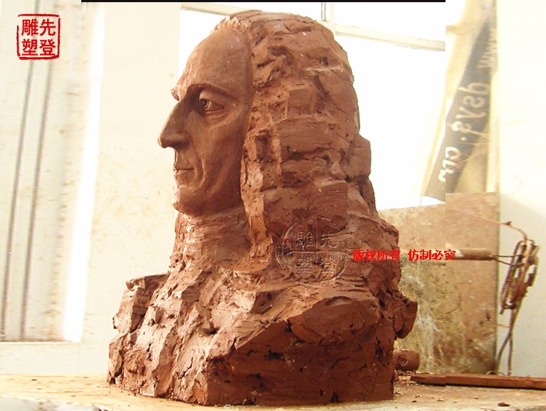 雕塑孟德斯鳩的塑造手法是激蕩的,以一名戰(zhàn)士般的豪情敘述,他的外在特征的跌宕起伏具有音樂的激昂的美,這美是悲哀的、激進(jìn)的、迷茫的,凝聚著無數(shù)的備受壓迫的人們的彷徨之音,形體的山勢,在氣場上給人高不可攀的征服性,正是這巍然的外在形體,撞擊出更為悲壯的音律氛圍,悲劇性的色彩壯大了雕塑藝術(shù)的形式美,而雕塑在內(nèi)容上潛入到孟德斯鳩思想的深處,發(fā)掘出內(nèi)里的豪情萬丈,訴諸于手下鮮潔明靜的泥土,亦成了這“戰(zhàn)士”的身軀,這身軀猶如山體,利斧劈鑿而成,沒有美輪美奐的“日出東山”“鳥啾蟲鳴”,是一幅在備受欺凌的世態(tài)下生存著的人民的生活實景,是當(dāng)時在封建主義和君主專制下的法國地圖,那是一卷地勢料峭、氣候惡劣,草木無以為生的光景,在這樣一個時代大背景下衍生出來的一位思想家,他的周身是粗狂的,未經(jīng)雕琢的圖景,唯有鑲嵌在山巔的雙眼,看見了清平世界,在那里,在那雙眼里看見了人們所生存的世界風(fēng)姿熠熠,笑語晏晏,他雙眼流盼,雕塑隨之靈透,流麗賦彩,粗狂下衍生的是藝術(shù)手法上的不著痕跡的幾經(jīng)斟酌思釀。雕塑中看到的孟德斯鳩以筆為毫,將世界納入胸膛,有著于人的親和以及對腐朽的統(tǒng)治階級的反抗精神。他是詩人,有著詩人的氣魄與多情,含情與萬物,心生憐憫的情意,這無限的情意迫使他成為了一名持戟的戰(zhàn)士,英勇無畏的追逐著文明的盛世。千山競秀萬壑爭流不再是夢寐。